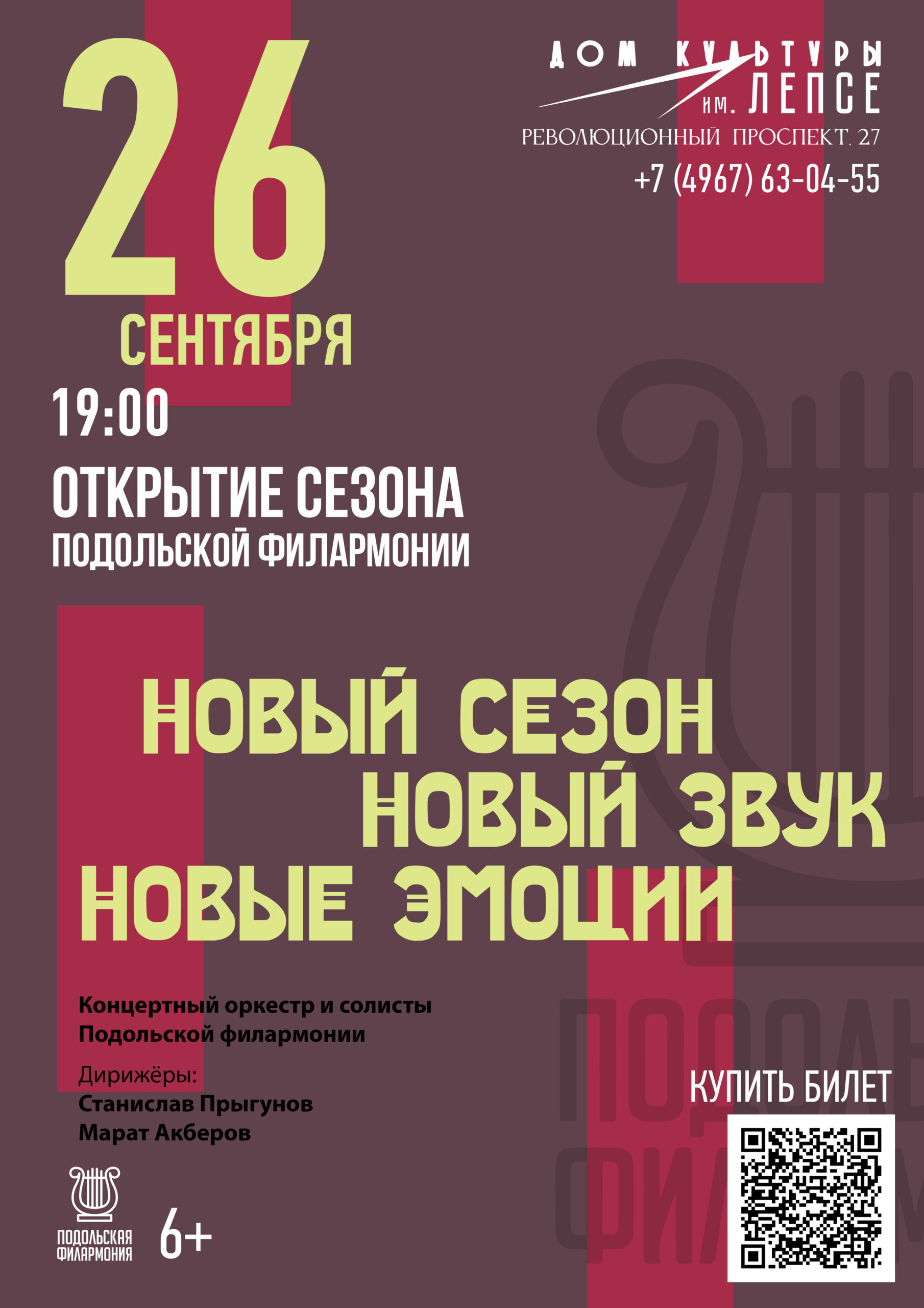 Подольская филармония приглашает на открытие нового концертного сезона! Мы обещаем вам не просто концерт, а настоящее преображение: новый звук, новые краски и невероятные солисты!